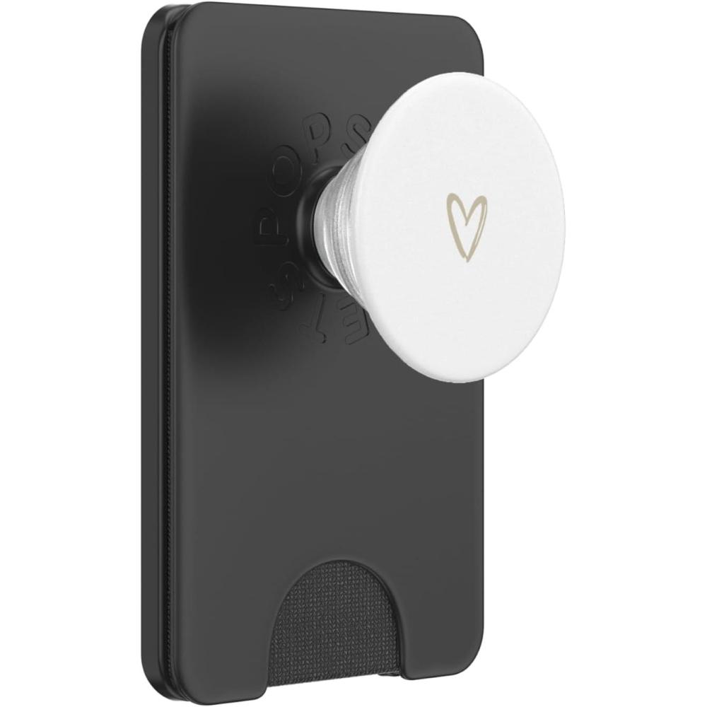 Beige White Minimalist Heart PopSockets Adhesive PopGrip(Magnetic PopWallet)