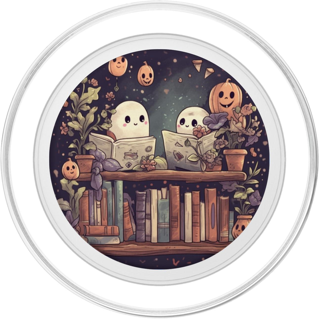 Cute Ghosts Reading Books Halloween Librarian Book Lover PopSockets Adhesive PopGrip(Magnetic PopGrip)