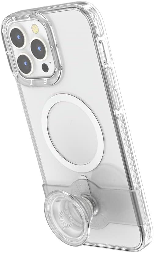 PopSockets iPhone 13 Pro Max Case with Phone Grip and Slide, Wireless Charging Compatible – Black(Clear)