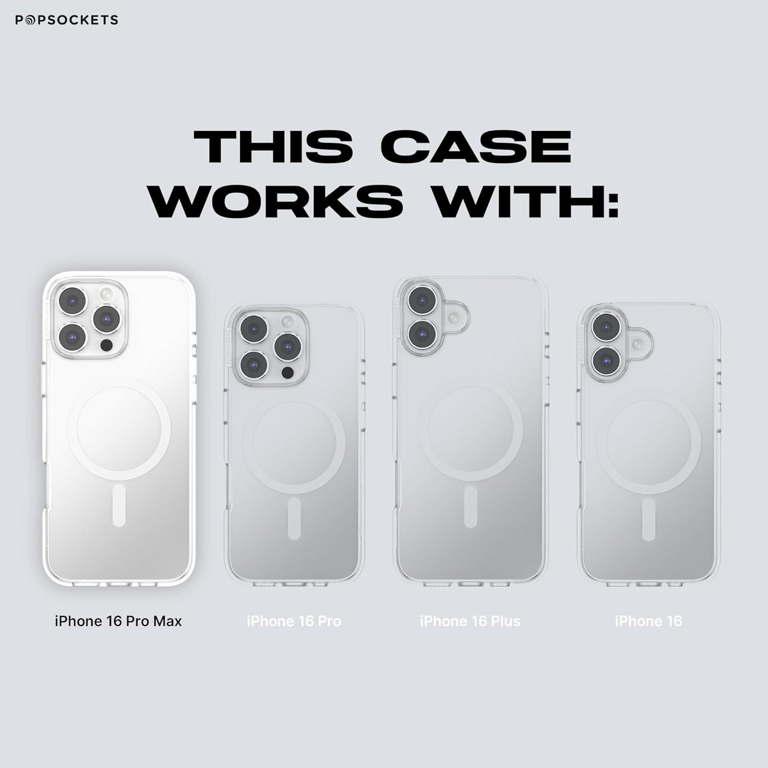 PopSockets iPhone 15 Pro Max case is compatible with all MagSafe accessories, wireless chargers, and all products in the PopSockets ecosystem.