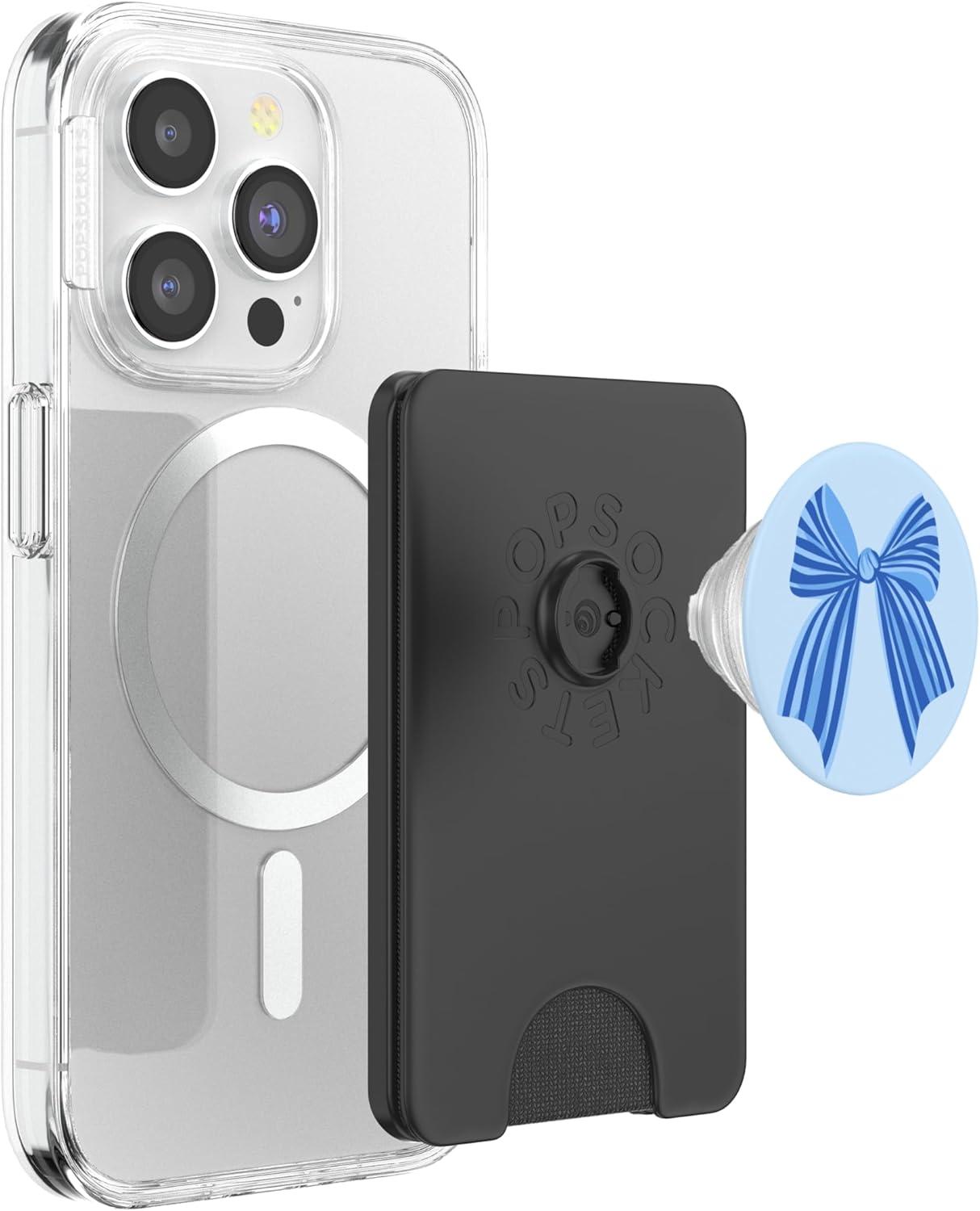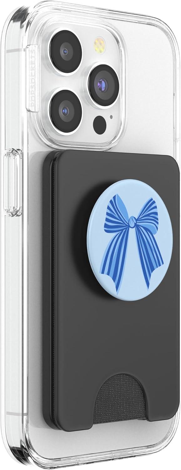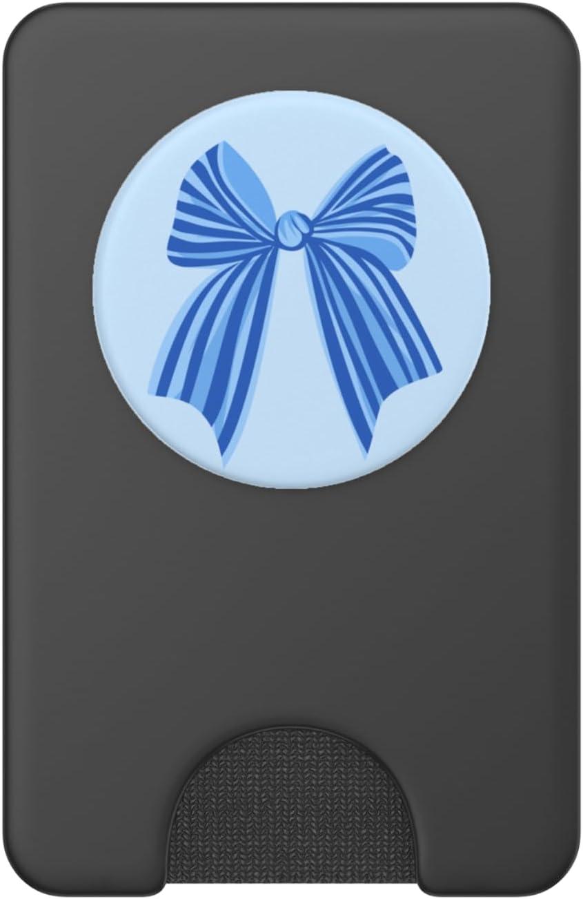 PopSockets Phone Grip – Blue Striped Bow PopSockets PopGrip for MagSafe(Magnetic PopWallet)