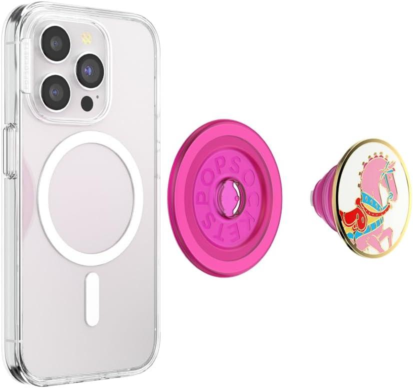 PopSockets Phone Grip for MagSafe with Kickstand, Magnetic Stand, Swappable Top, Secure Hold for iPhone MagSafe Cases, Phone & Tablet Grip, Cute PopSockets – Molded Flower Kaleidoscope(Carousel Pony)