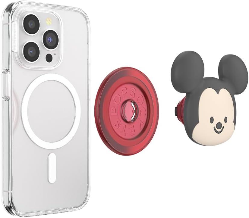 PopSockets Phone Grip for MagSafe with Kickstand, Magnetic Stand, Swappable Top, Secure Hold for iPhone MagSafe Cases, Phone & Tablet Grip, Disney – Enamel Tonal Flower Mickey(Red)