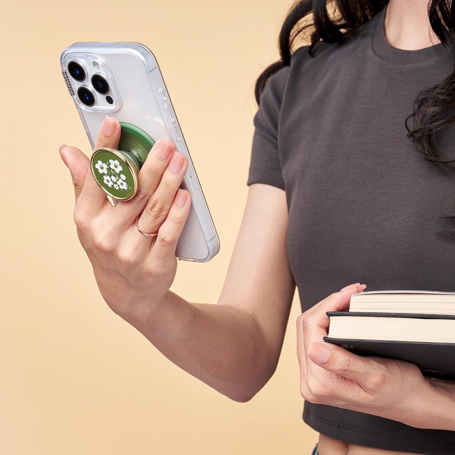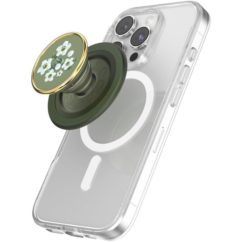 PopSockets Phone Grip for MagSafe with Kickstand, Magnetic Stand, Swappable Top, Secure Hold for iPhone MagSafe Cases, Phone & Tablet Grip – Lily of The Valley(Floral Relief)