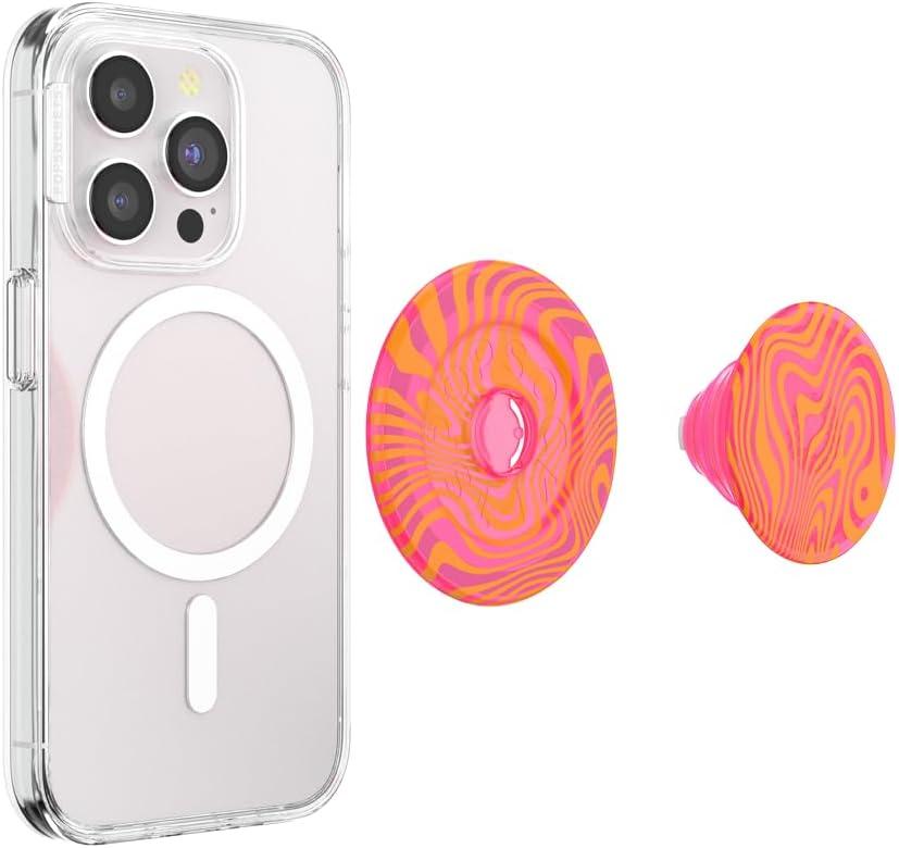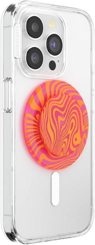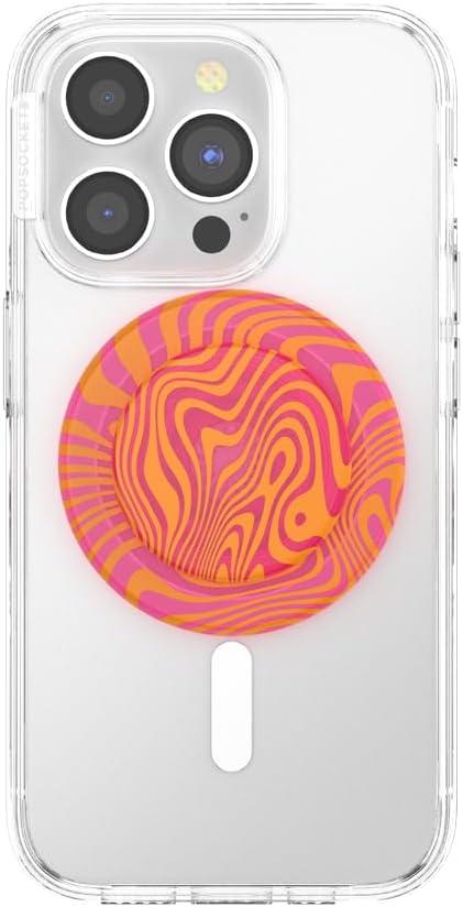 PopSockets Phone Grip for MagSafe with Kickstand, Magnetic Stand, Swappable Top, Secure Hold for iPhone MagSafe Cases, Phone & Tablet Grip – Swirl Aviation Orange(Swirl Orange)