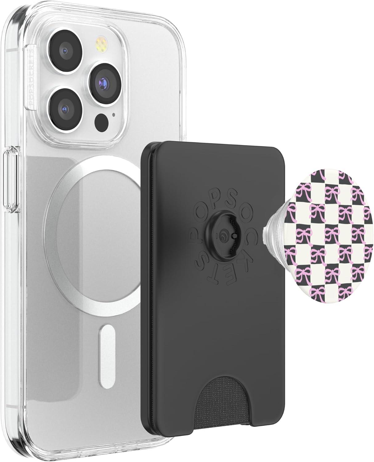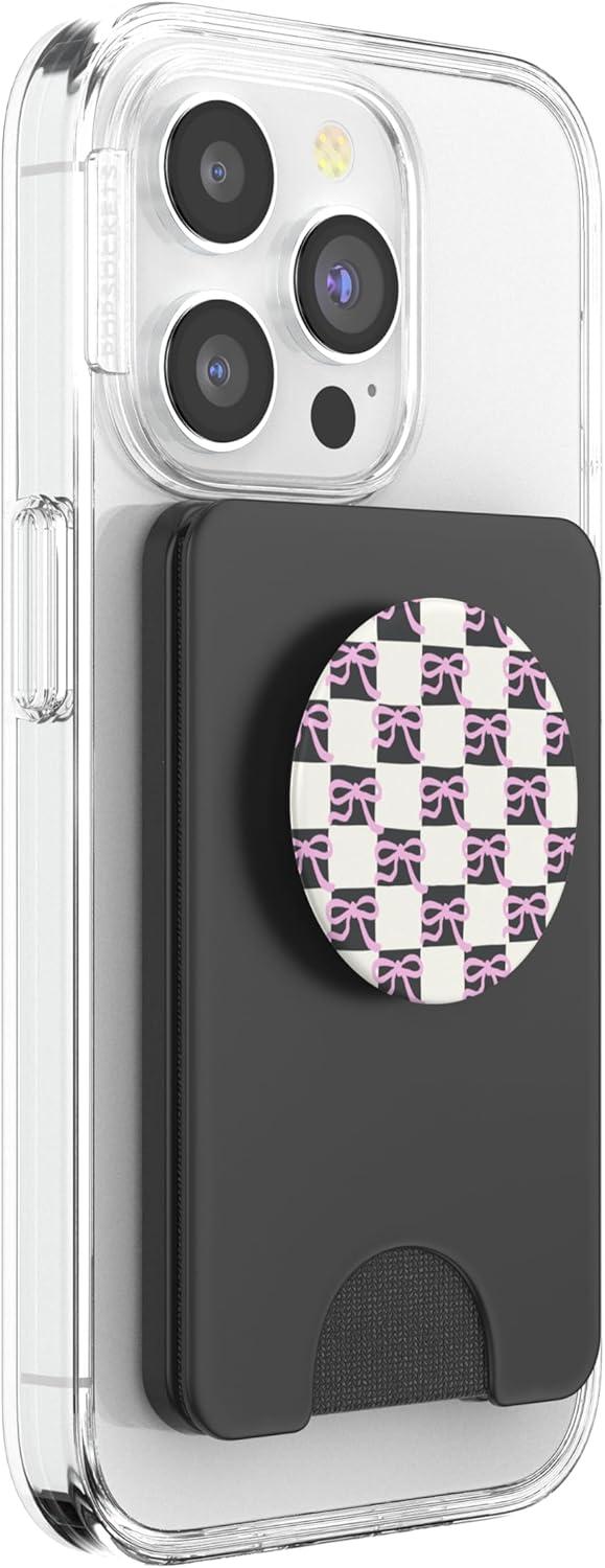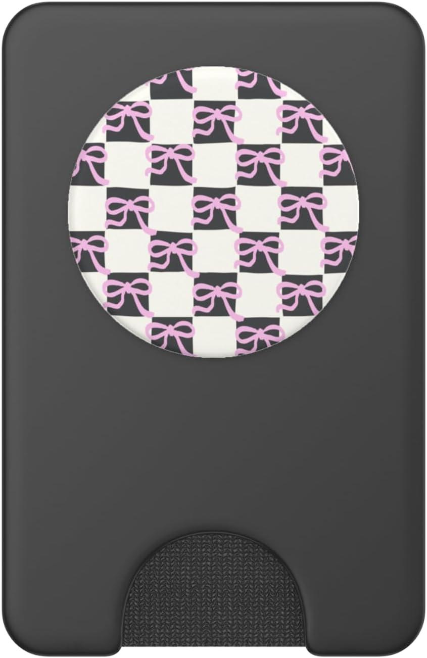 PopSockets Phone Grip – Pink & Black Bow Checker PopSockets PopGrip for MagSafe(Magnetic PopWallet)