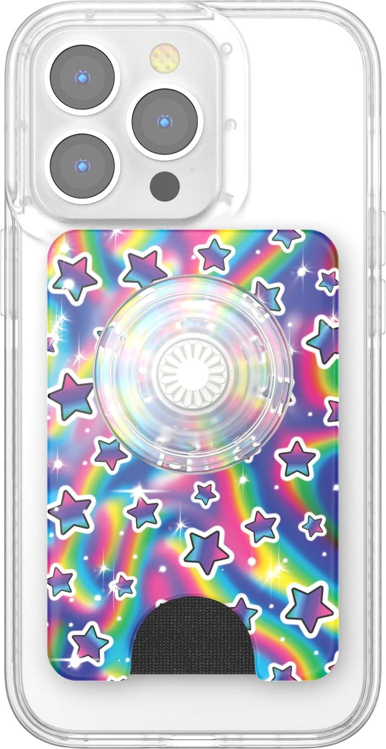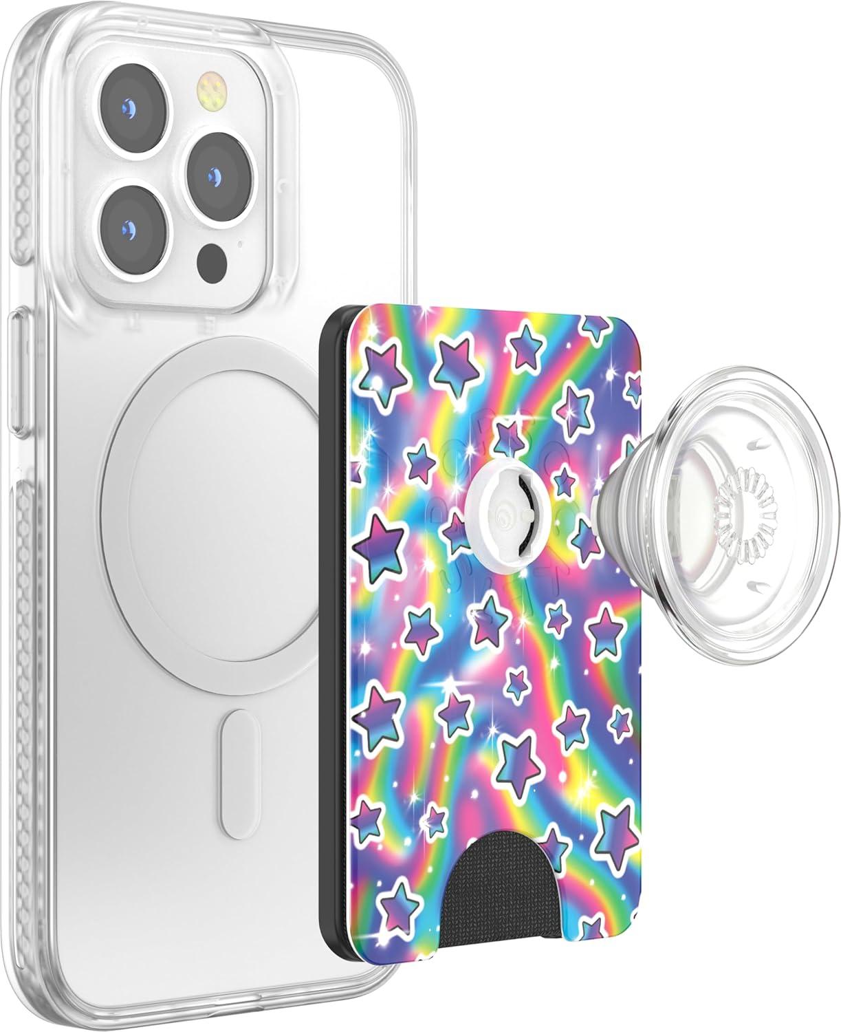 PopSockets Phone Wallet with Expanding Grip and Adapter Ring for MagSafe, Magnetic Phone Card Holder, Wireless Charging Compatible, Wallet Compatible with MagSafe/Samsung – Aurange(Starbright)