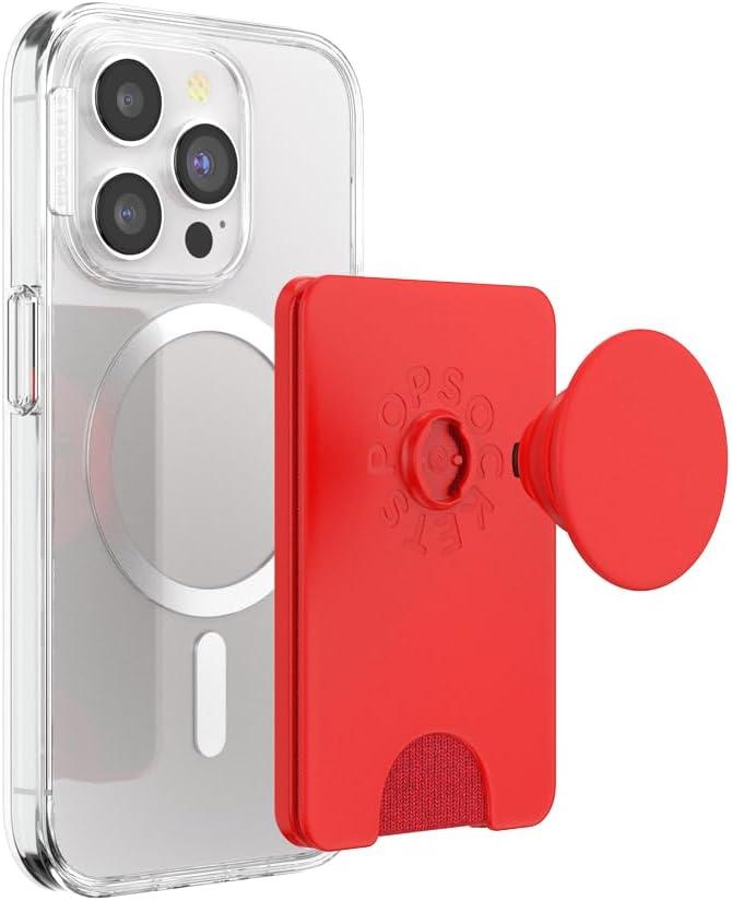 PopSockets Phone Wallet with Expanding Grip and Adapter Ring for MagSafe, Phone Card Holder, Wireless Charging Compatible, Wallet Compatible with MagSafe – Fatigue(Rosso)