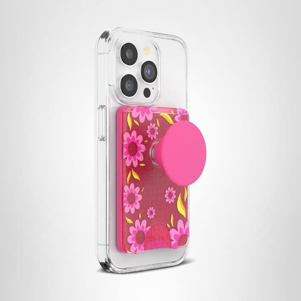 PopSockets Phone Wallet with Expanding Grip, Phone Card Holder, Wireless Charging Compatible, Wallet Compatible with MagSafe – Farmer’s Market(Pink Relief)