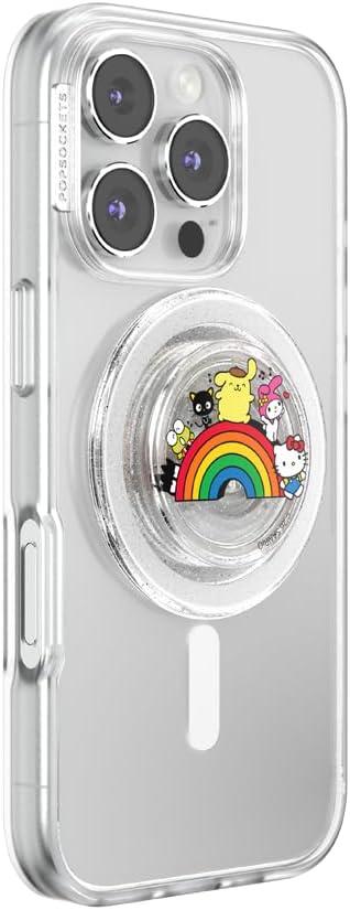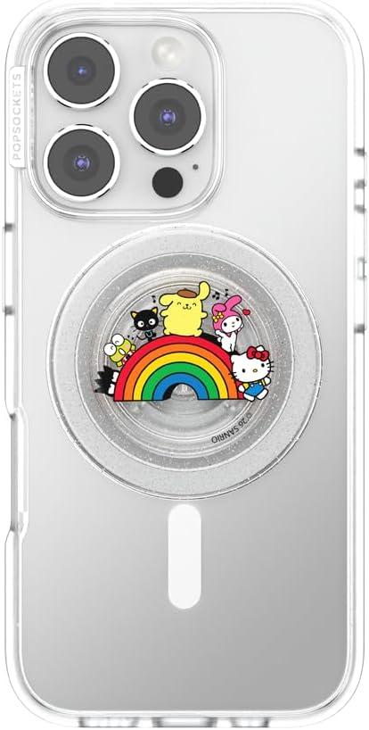 PopSockets Round Phone Grip Compatible with MagSafe, Adapter Ring Included, Phone Holder, Wireless Charging Compatible, Sanrio – Over The Rainbow Hello Kitty