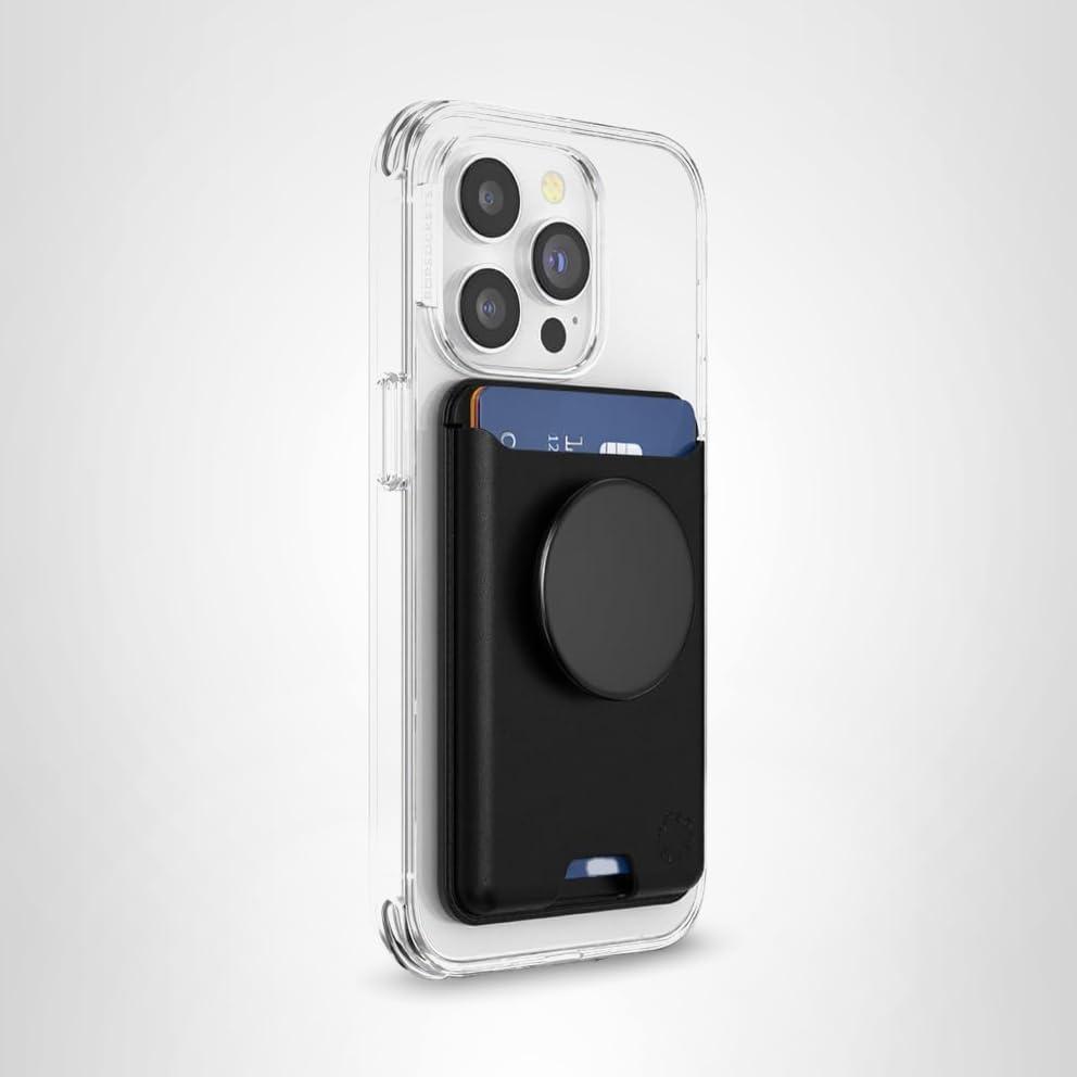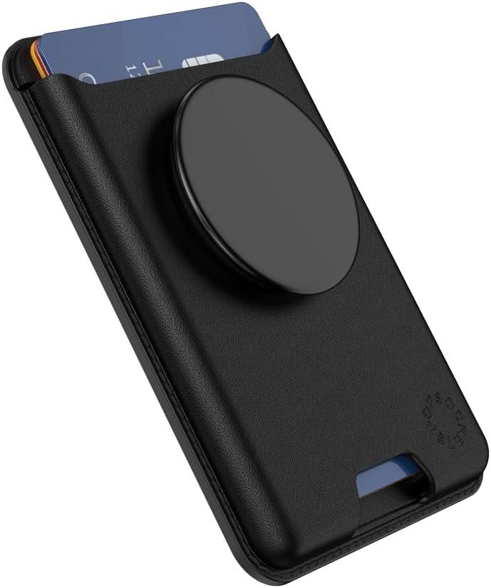 The PopSockets MagSafe Wallet is part of the PopSockets MagSafe ecosystem, designed to make your phone more functional than ever. Compatible with MagSafe cases, grips, mounts, and power accessories, it allows for easy magnetic swapping between essentials — from your wallet to your mount to your charger — all with one seamless connection. This slim magnetic wallet holder securely snaps to the back of your MagSafe phone or case, holding up to three credit cards inside a protective card holder. Built with powerful magnetic attachment, it aligns perfectly every time and stays in place while you move, text, or take photos. The smooth, removable MagSafe attachment makes it easy to slide the wallet off for wireless charging without removing your case or losing your cards. Designed for everyday convenience, this MagSafe phone wallet combines sleek style with practical function. The slim design keeps your cellphone comfortable to hold and pocket-friendly, while the secure magnetic structure provides a confident grip that helps prevent drops. Pair your PopSockets wallet with a MagSafe grip for extra hold, a mount for hands-free use, or a power accessory for quick charging — all built to work together effortlessly within the PopSockets MagSafe ecosystem.