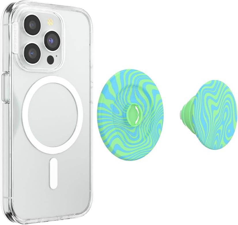 Title: PopSockets Phone Grip for MagSafe with Kickstand, Magnetic Stand, Swappable Top, Secure Hold for iPhone MagSafe Cases, Phone & Tablet Grip – Ripple Iridescent Absinthe(Swirl Lime)